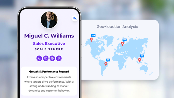 Analyze interactions by device type, location, and time to understand audience behavior patterns and optimize when and how you share your card.