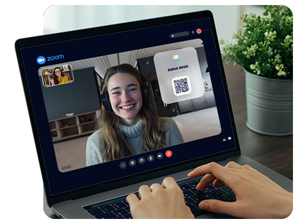 Create virtual backgrounds featuring your logo, brand colors, and a QR code that lets attendees instantly access your digital business card.