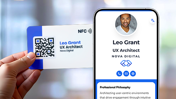 Share your digital business card instantly using NFC tap or QR scan with no app, no typing, and no friction for recipients.